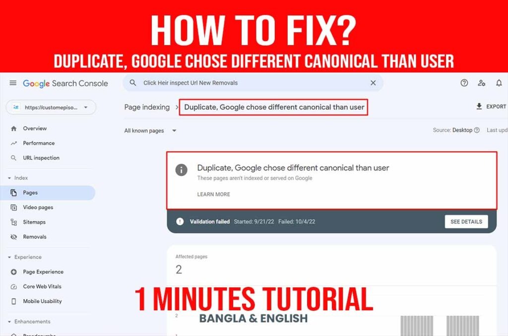 How To Fix Duplicate Google chose a different canonical than the user Google Search Console